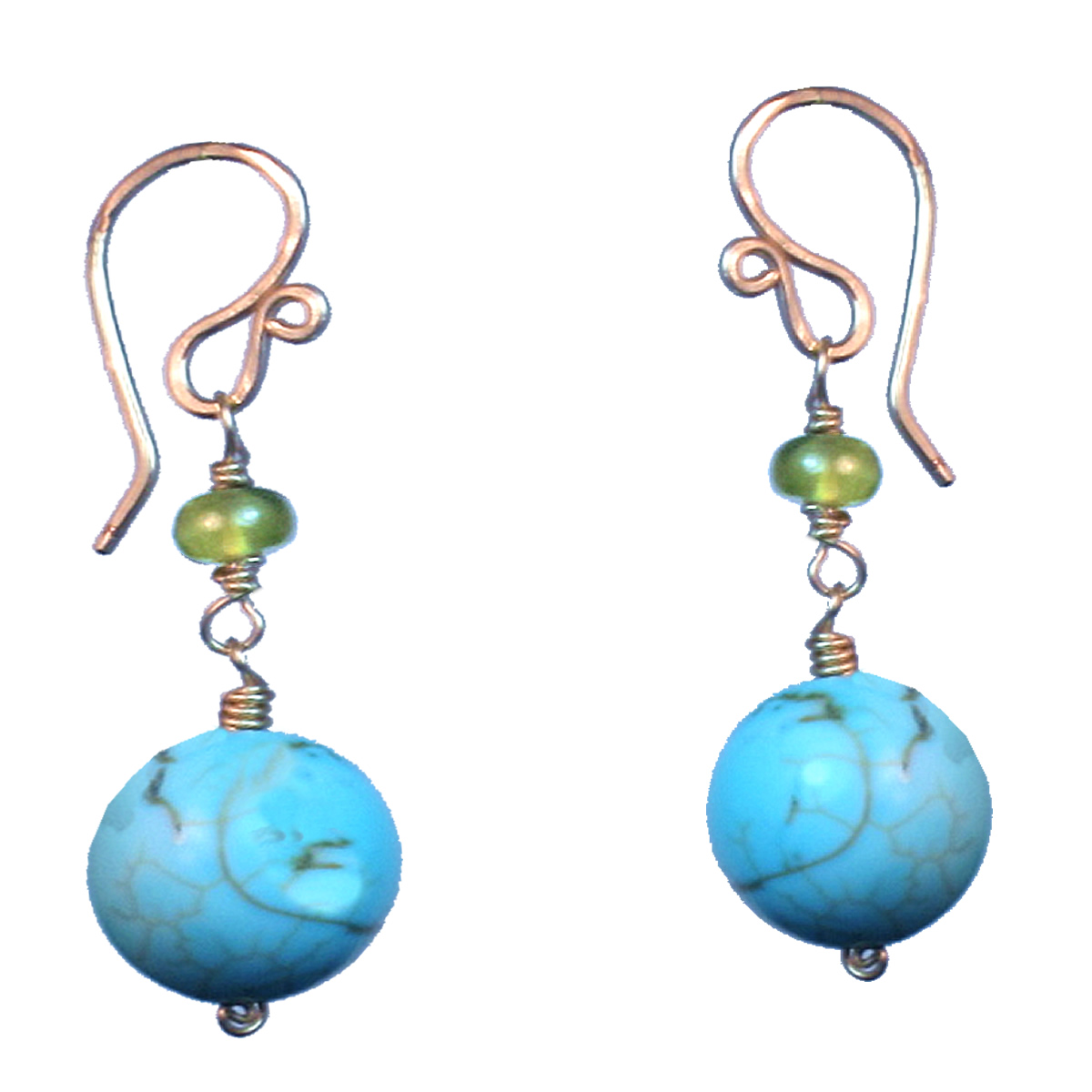 Peridot linked with turquoise magnesite, about 1-1/2" long.