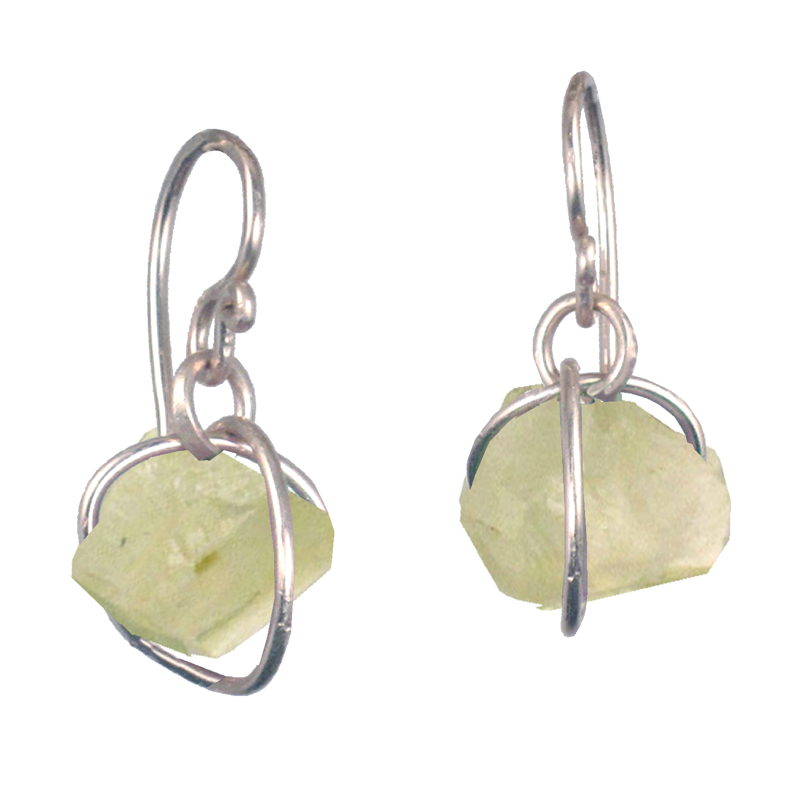 Rough-cut prehnite in wire cage, about 1" long. Available in either 14K gold-filled, rose gold-filled, or sterling silver.