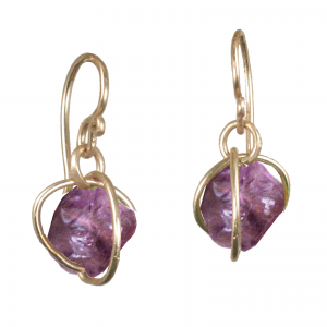 Rough-cut amethyst in wire cage, about 1" long. Available in either 14K gold-filled, rose gold-filled, or sterling silver.