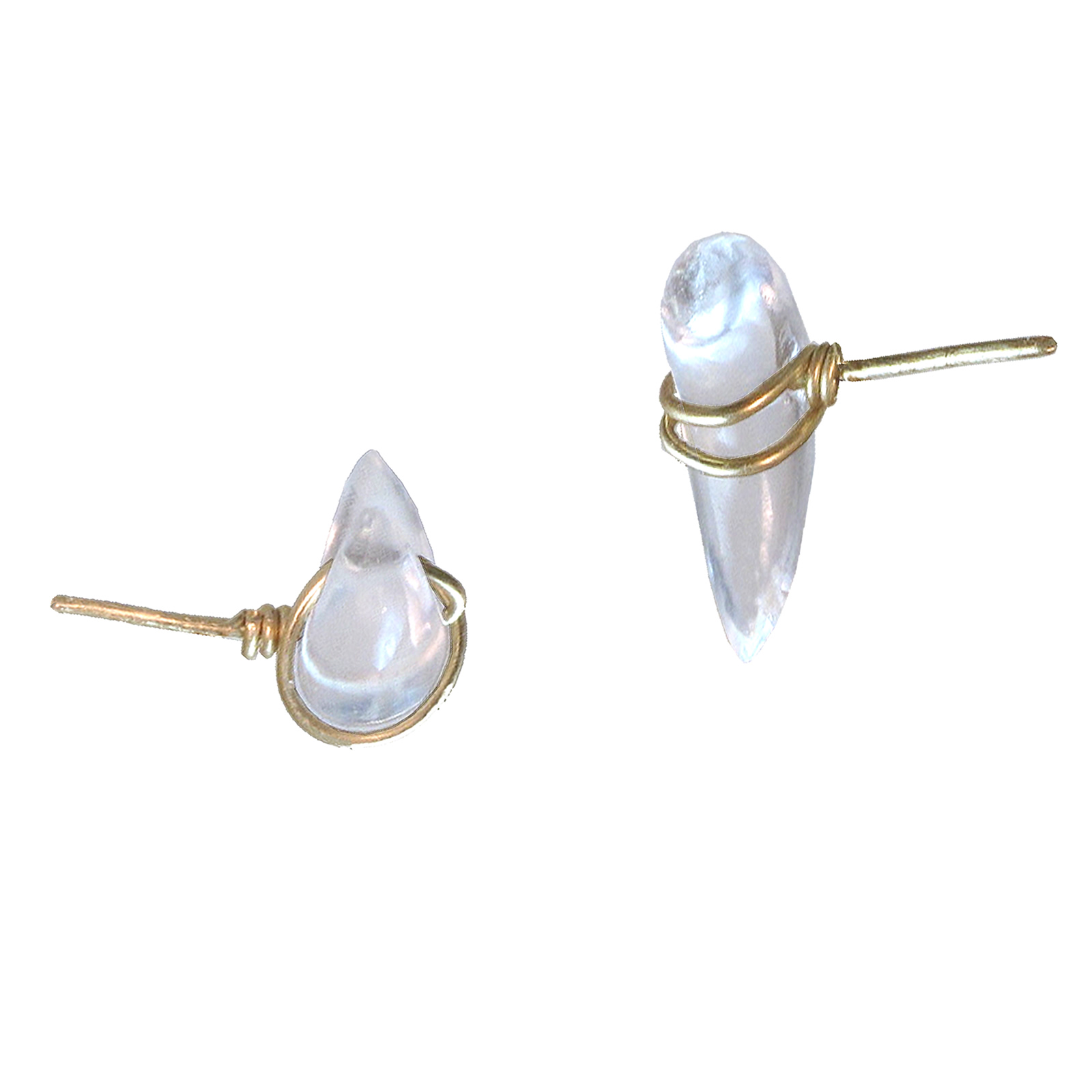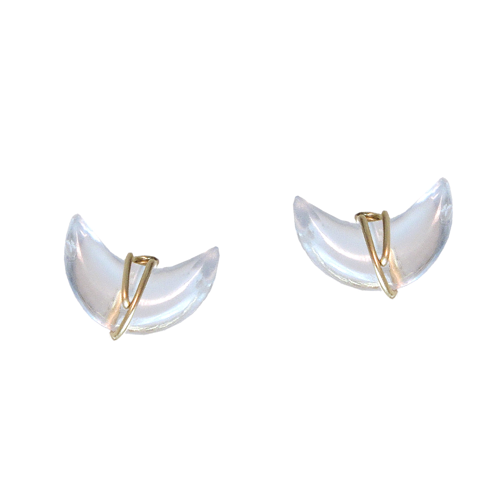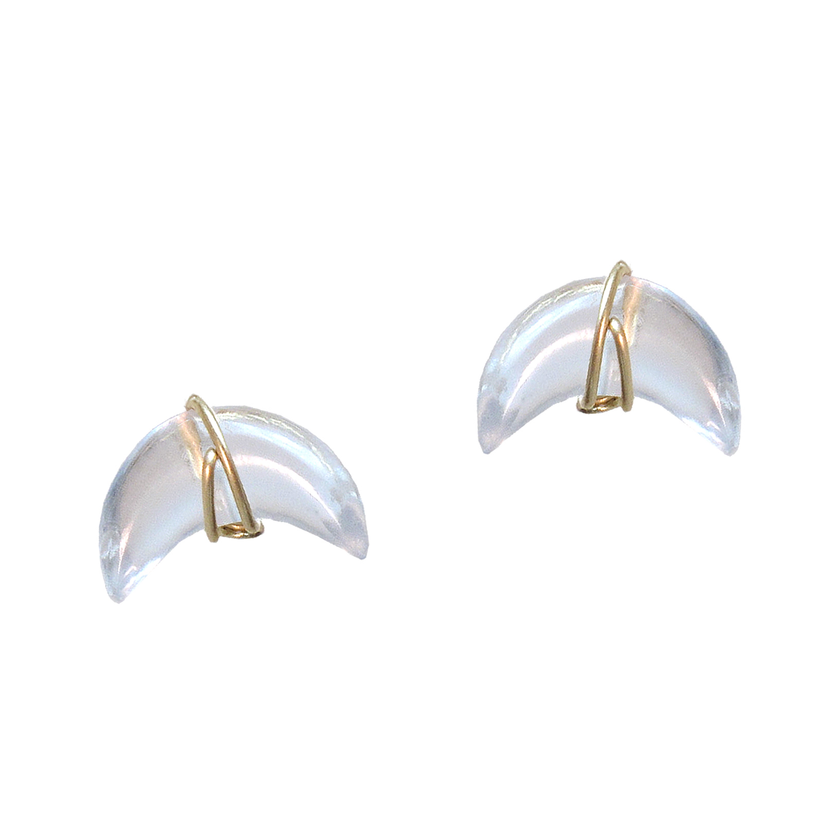 Crystal quartz moon posts, about 1/2" long. Available in either 14K gold-filled, rose gold-filled, or sterling silver.