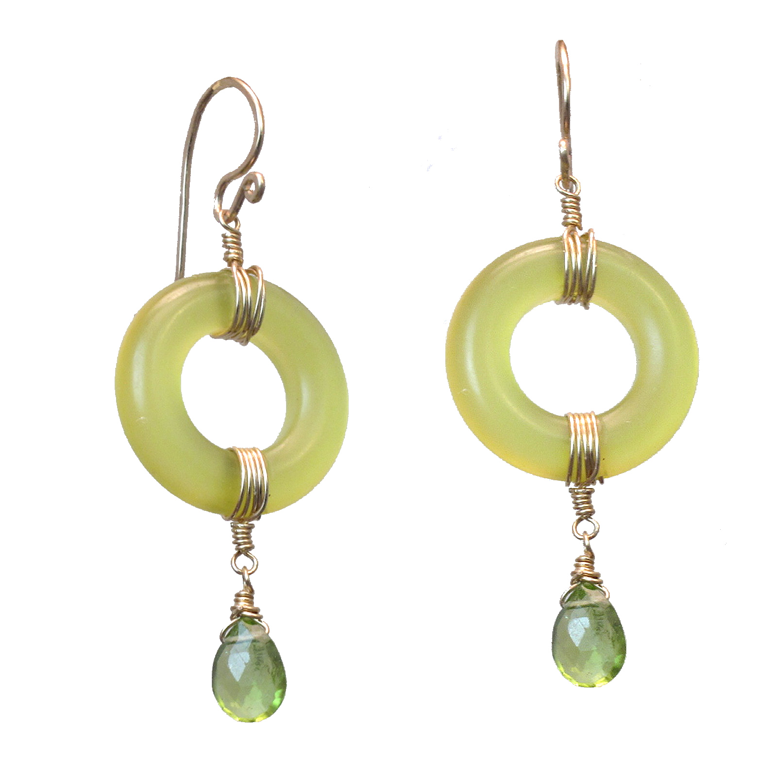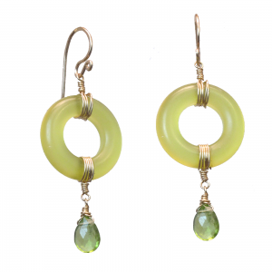 Olive jade circles with peridot, about 1-1/2" long.