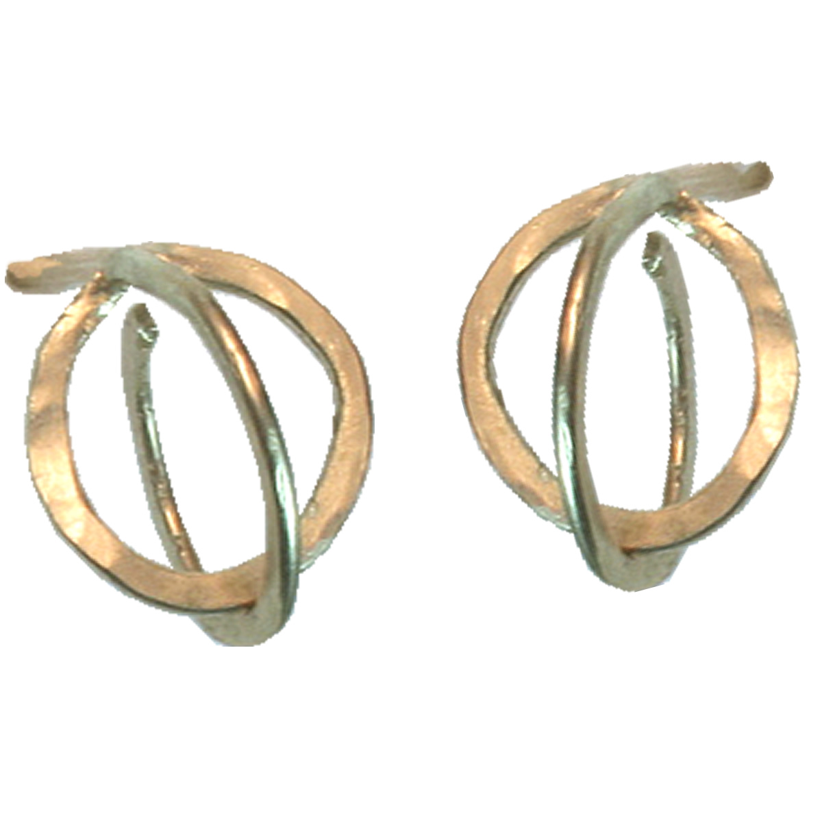 Hammered 3-d double circles, with rubber earnut included, about 1/2" long.