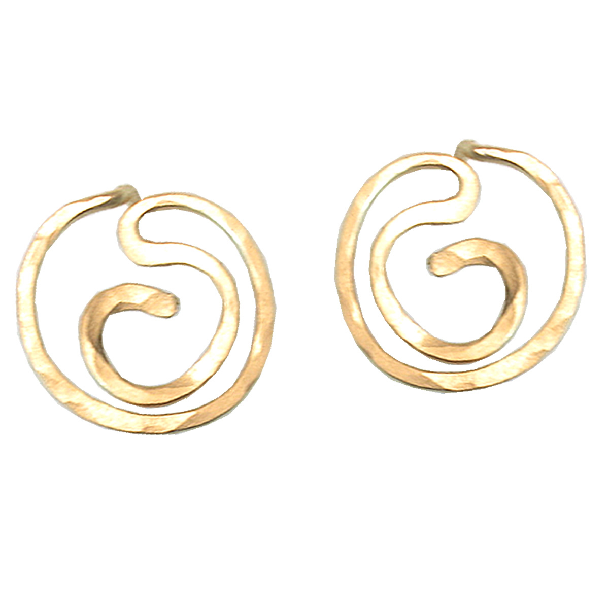 Hammered swirly circles, with rubber earnut included, about 3/4" long.