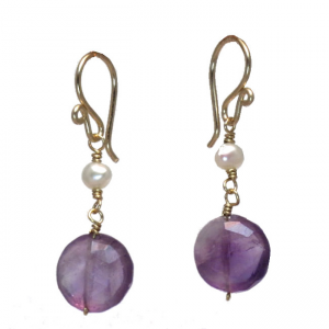 Ivory freshwater pearls and round amethyst, about 1-1/4" long.
