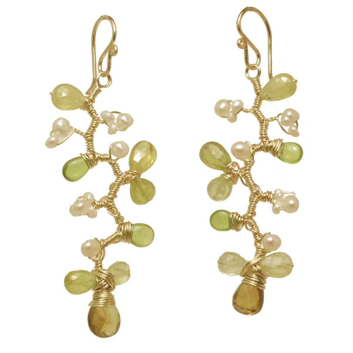 Branch-like shape wired with ivory pearlsand green garnet, about 1-3/4".