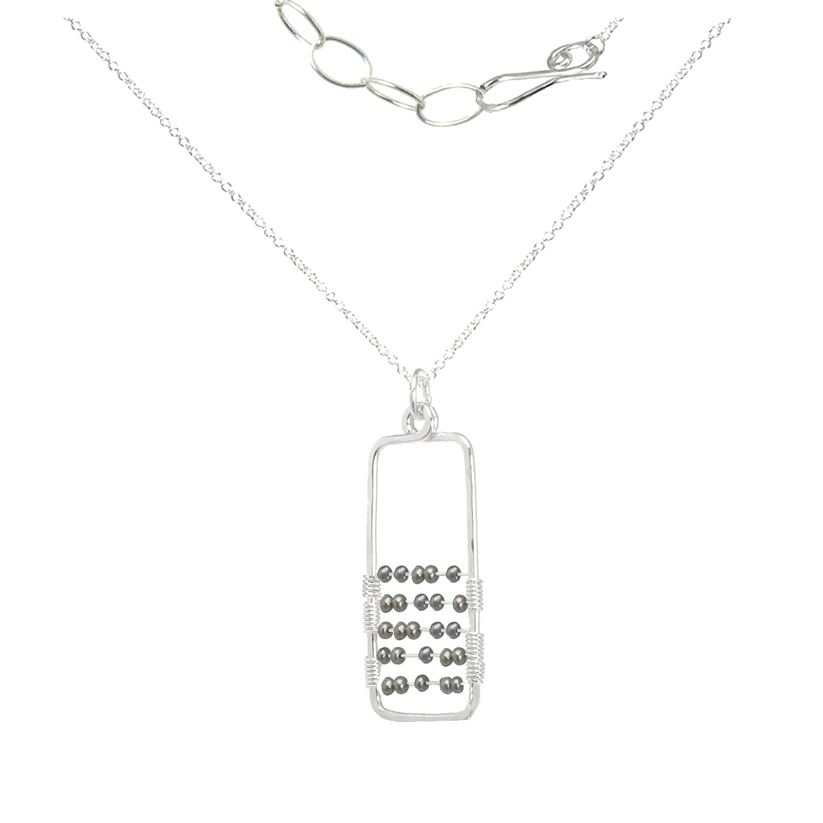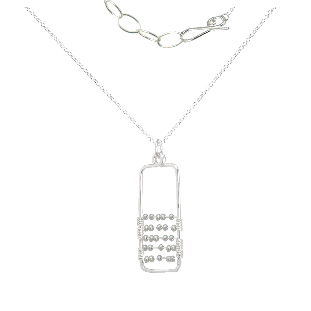 "Abacus" pendant with your choice of color, about 18" long (pendant about 1-1/2" long). Contact us for different lengths.
