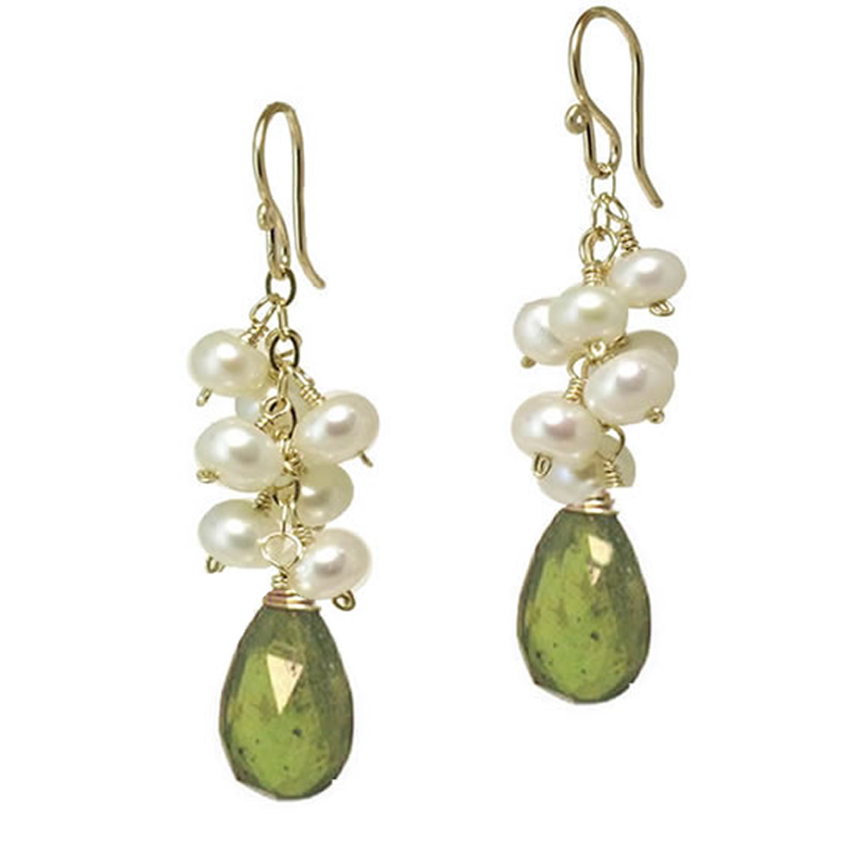 Clusters of ivory pearls and your choice of stone, about 2" long.