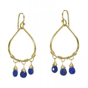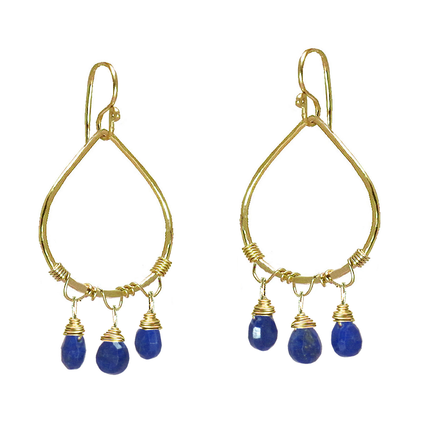 Hammered drop hoops with stone of choice, about 1-3/4".