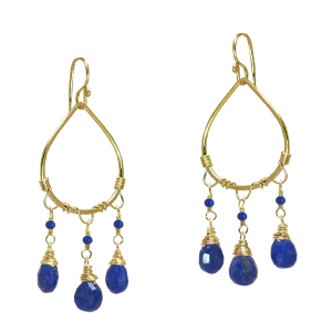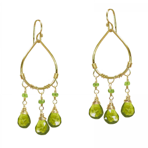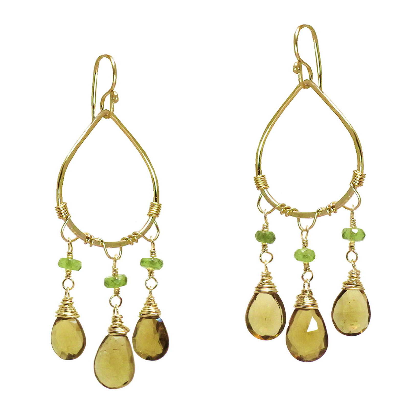 Hammered drop hoop with choice of top and bottom stones, about 2".
