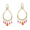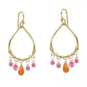 Hammered drop hoop wrapped with pink sapphire and carnelian, about 1-3/4" long.