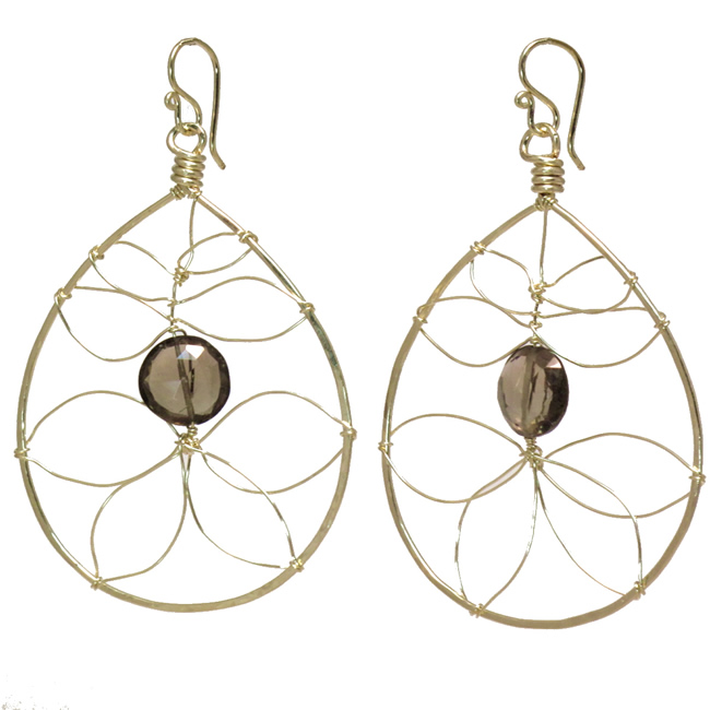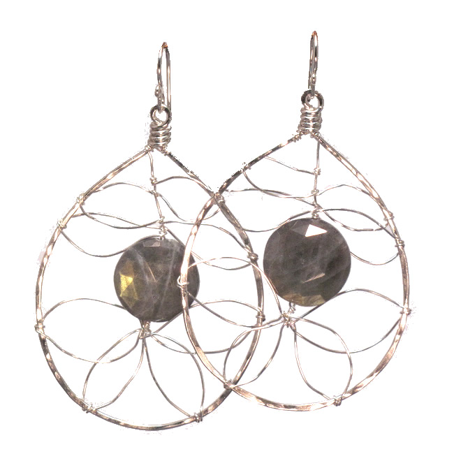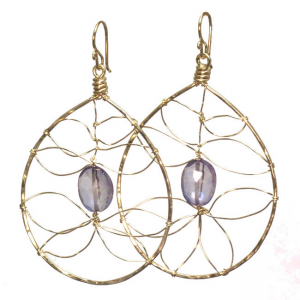 Large hammered drop hoop with center stone of your choice, about 2-1/4" long.