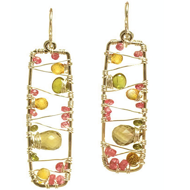Hammered rectangles with pink ruby, citrine, and vessonite, about 2-1/4".