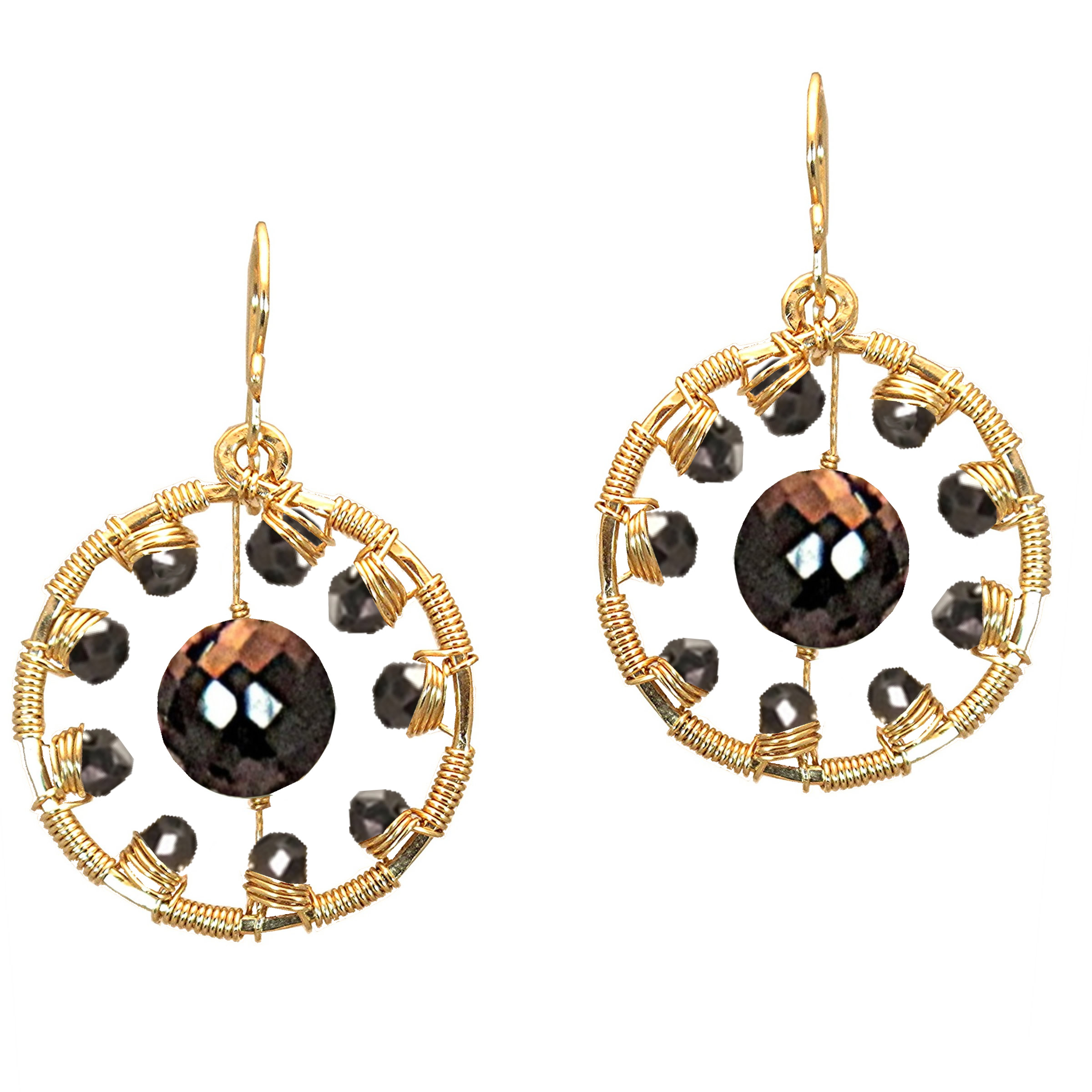 Hammered circles with black spinel wrapped around inside, about 1-1/4" long.