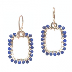 Hammered rectangles with your choice of stone wrapped around, about 1-1/2" long.