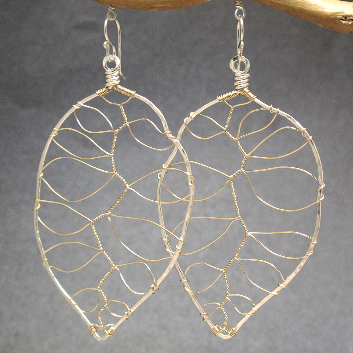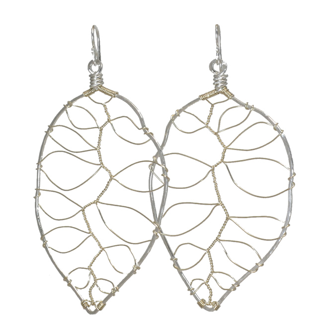 Hammered large wired leaves, about 2-3/4" long.