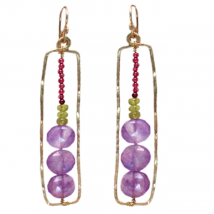 Hammered rectangles with garnet, idocrase, and amethyst, about 2".