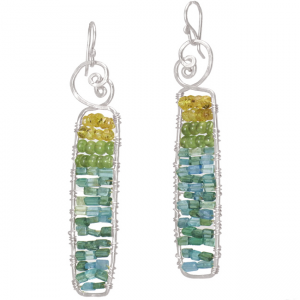 Hammered rectangles with mandarin garnet, peridot, and apatite, about 2" long.