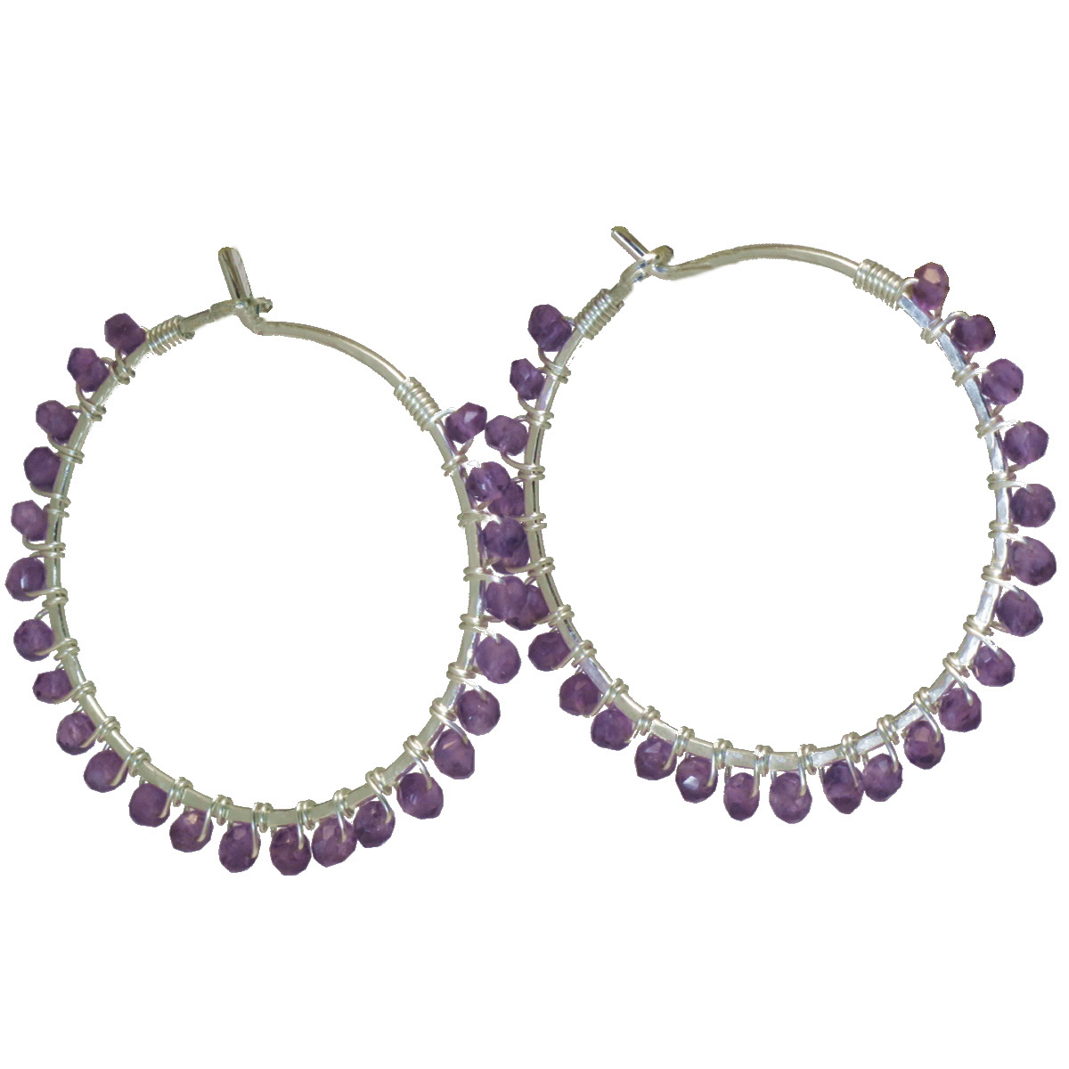 Hammered hoops with your choice of stone wrapped around, about 1-1/4".