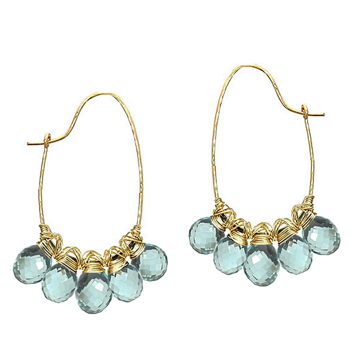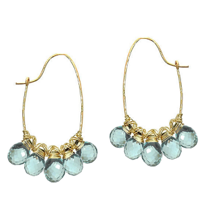 Oblong hammered hoops wrapped with aqua quartz, about 1-3/4".