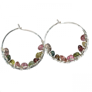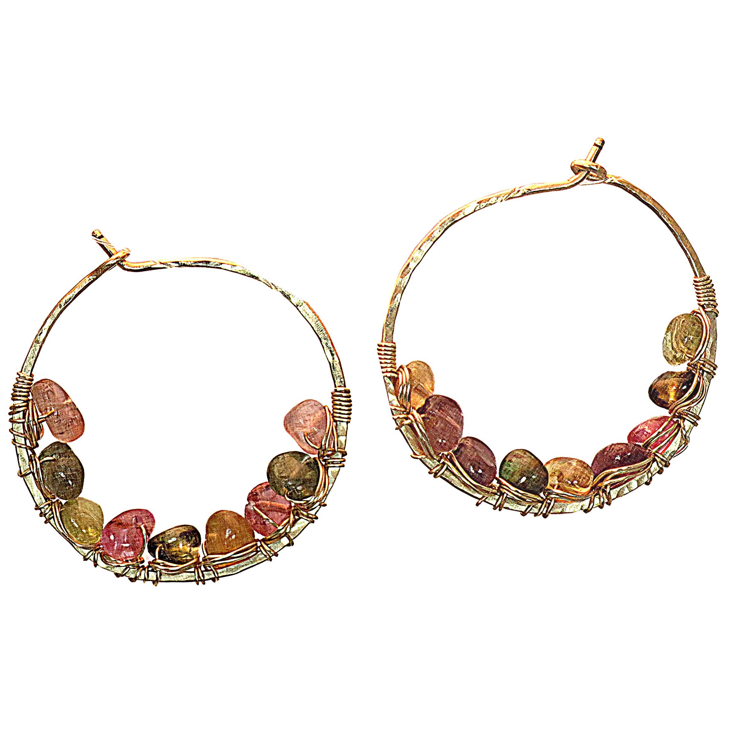 Hammered hoops wrapped with tourmaline, about 1-1/4".