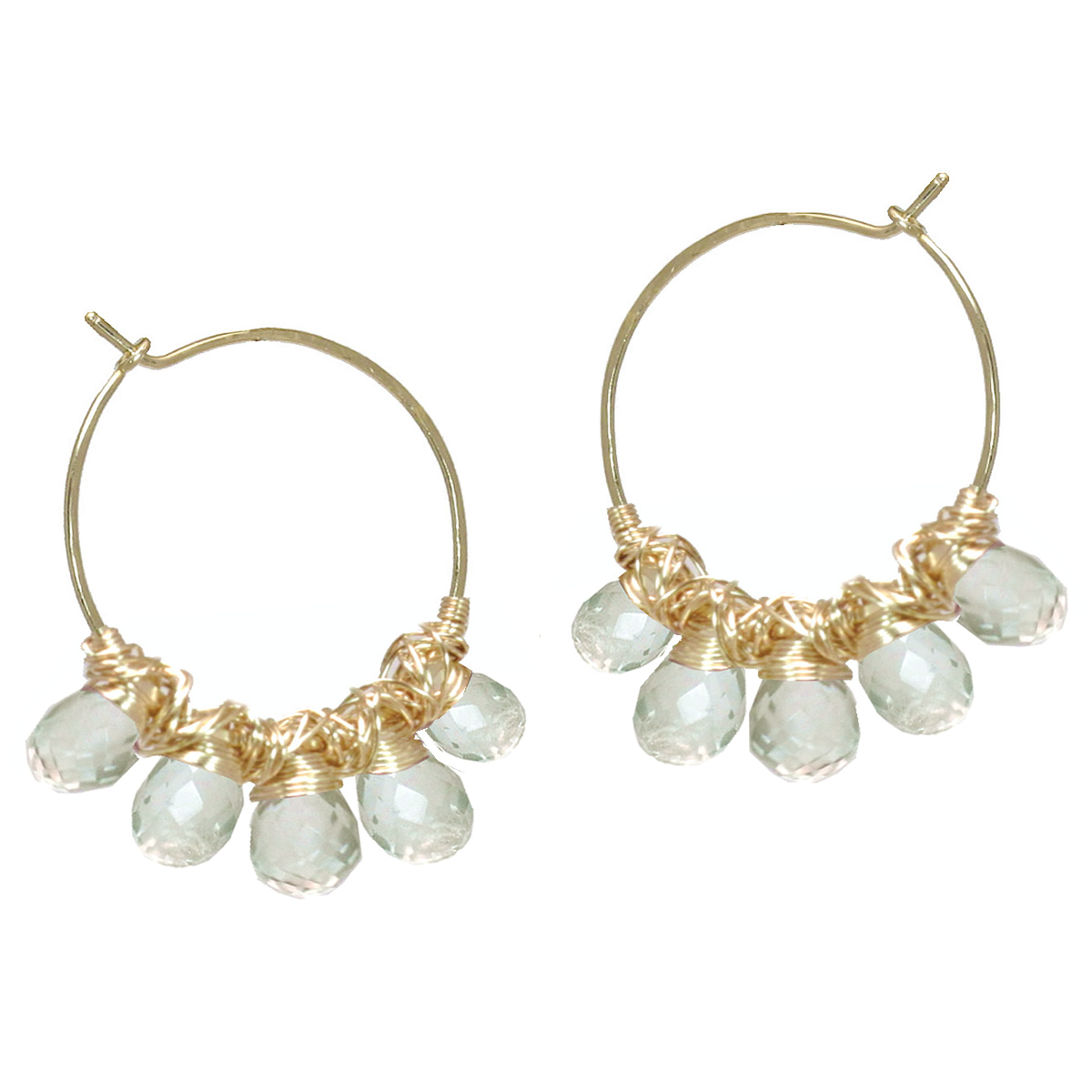 Hoops wrapped with green amethyst, about 1-3/4" long.