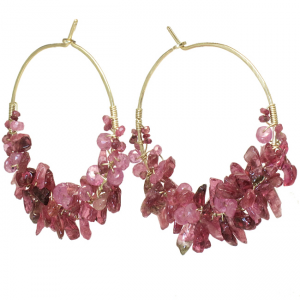 Hoops wrapped with pink tourmaline, about 1-3/4" long.