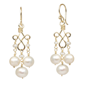 Ivory pearls on hammered curled wire, about 1-3/4" long.