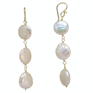 Ivory coin pearls, about 2" long.