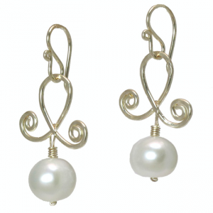 Hammered circles with ivory pearlswrapped around, about 1-1/2" long.