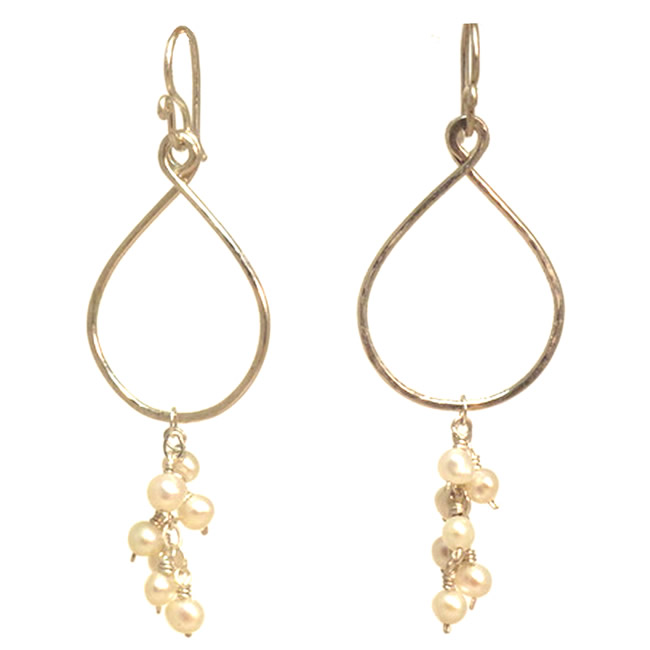 Ivory pearls on hammered teardrop shape, about 1-3/4" long.