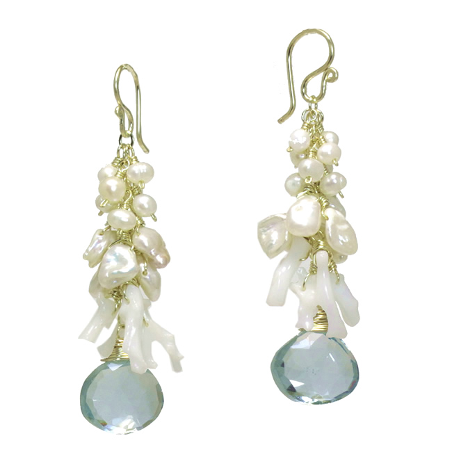 Ivory pearls, white branch coral, and green amethyst, about 1-3/4" long.