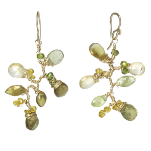 Branch-like shape wired with orange sapphireand green garnet, about 1-3/4".