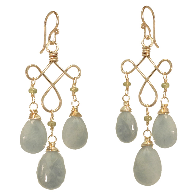 Peridot and amazonite on curled wire, about 2".
