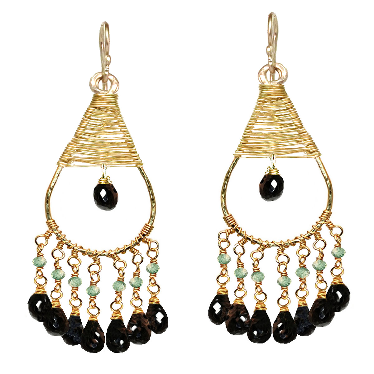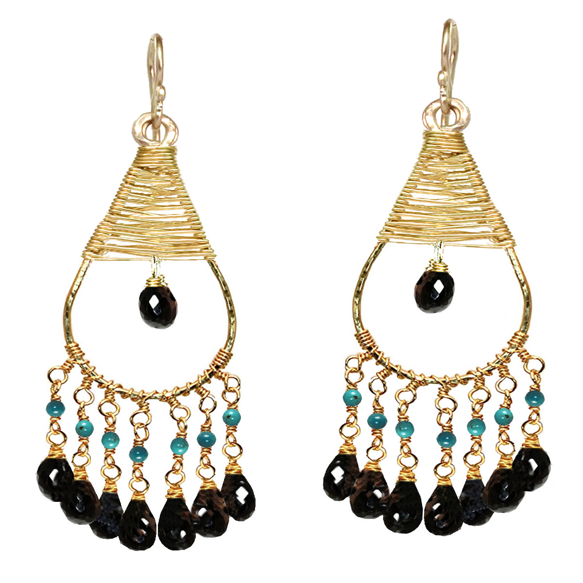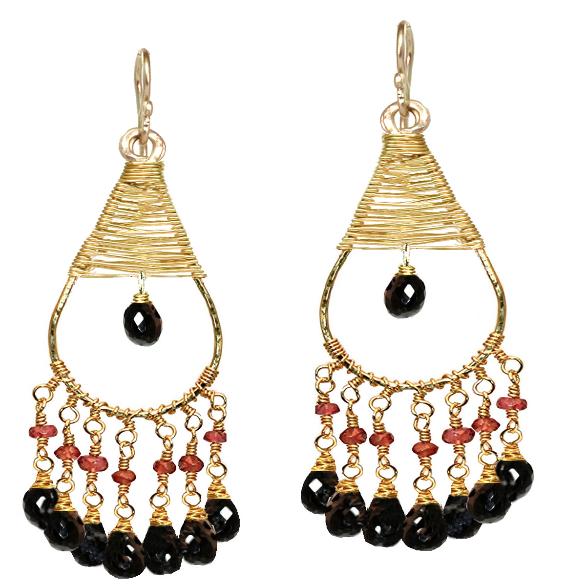 Hammered drops with your choice of rondell with black spinel, about 2-3/4" long.