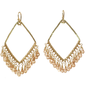 Hammered drop hoop with champagne cz, about 2-1/4".