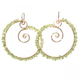 Hammered swirls wrapped with choice of rondelles, about 2".