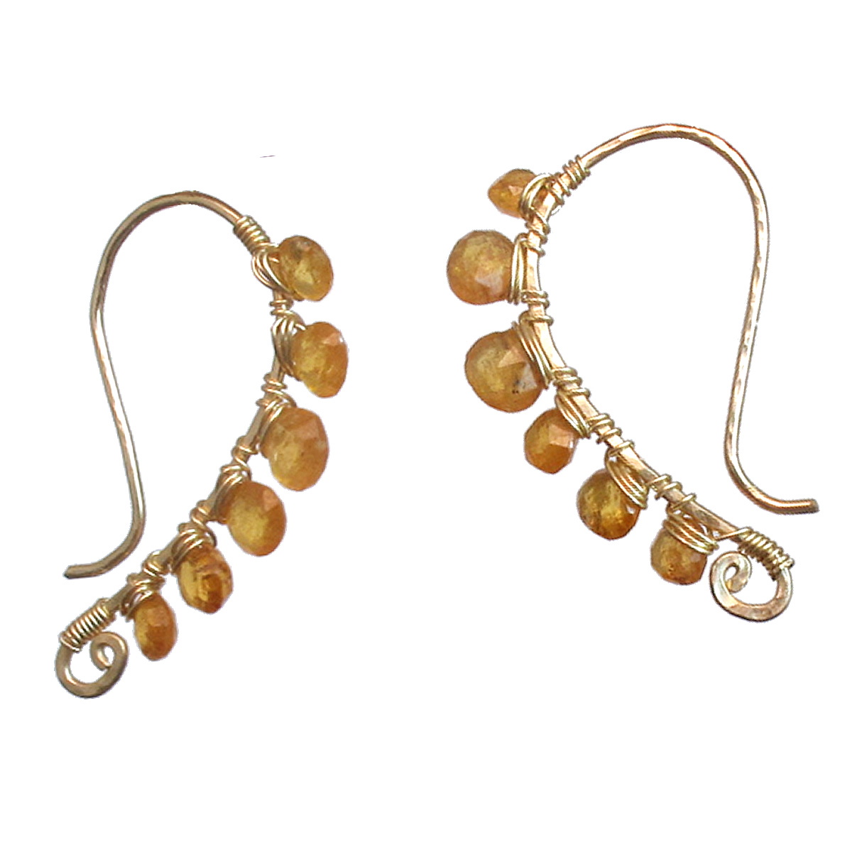 Hammered curved wires with mandarin garnet, about 1-1/2".