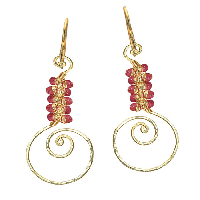 Hammered swirl shapes wrapped with choice of stone, about 1-3/4".