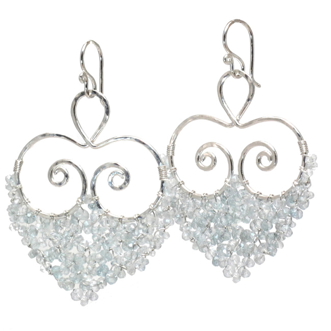 Hammered swirled shapes wrapped with your choice of rondelles, about 2".