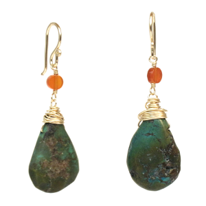 Carnelian linked with rough green turquoise, about 1-1/2".