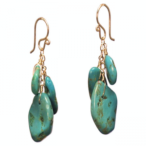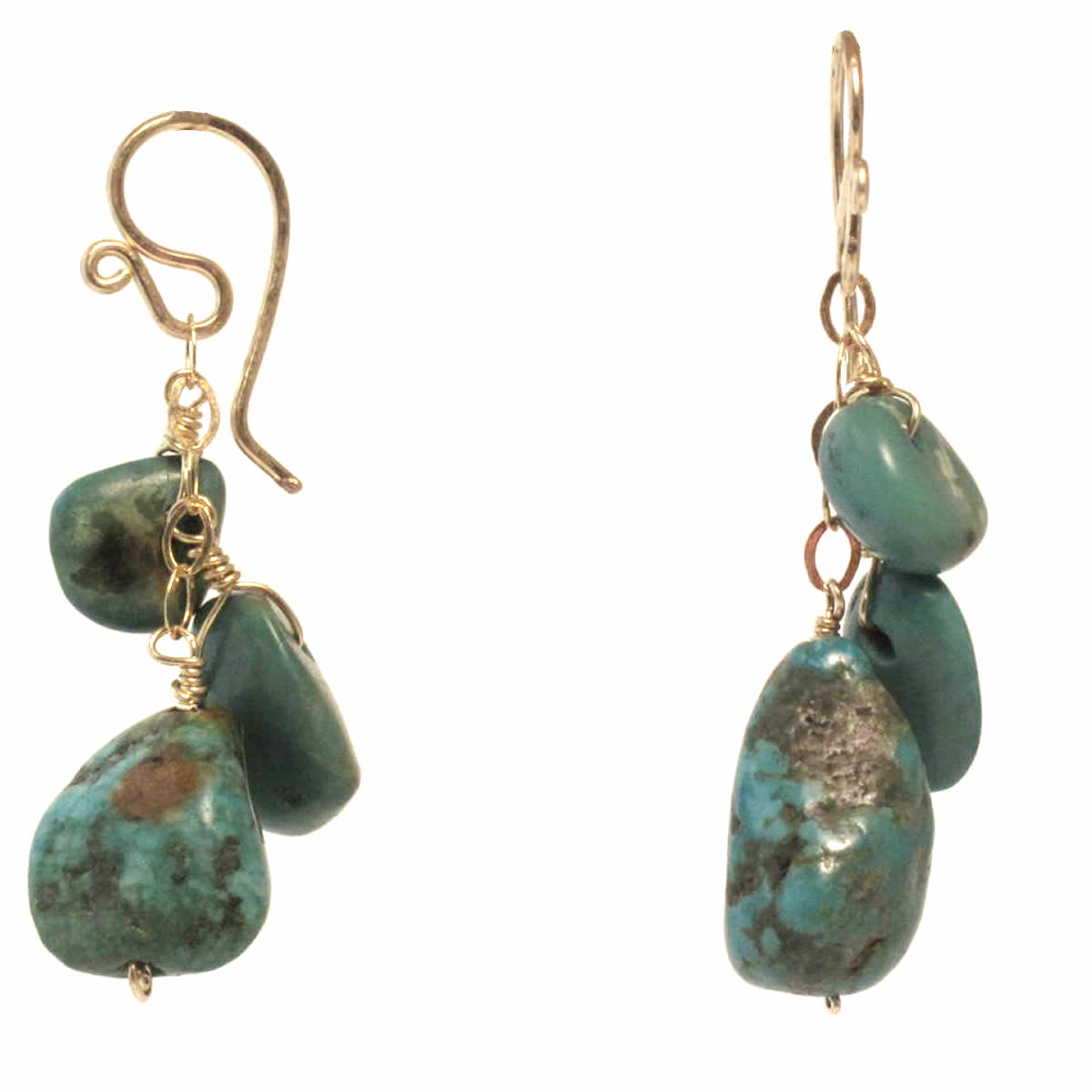 Clusters of dangling smooth oval turquoise, about 1-3/4" long.