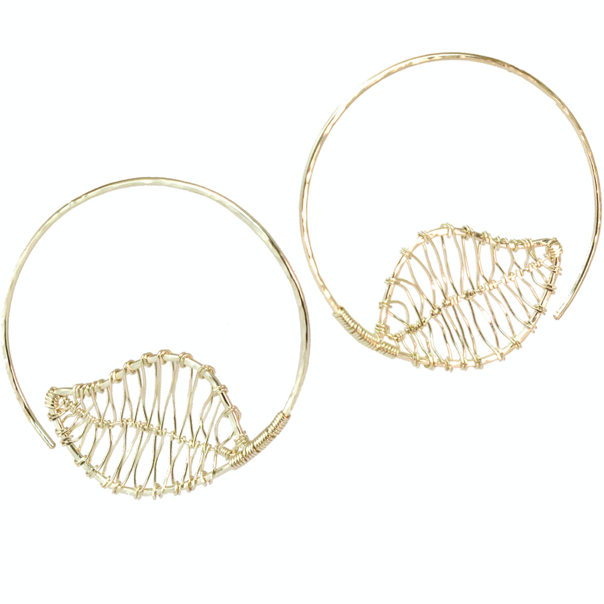 Hammered hoops with leaf shape, about 2".