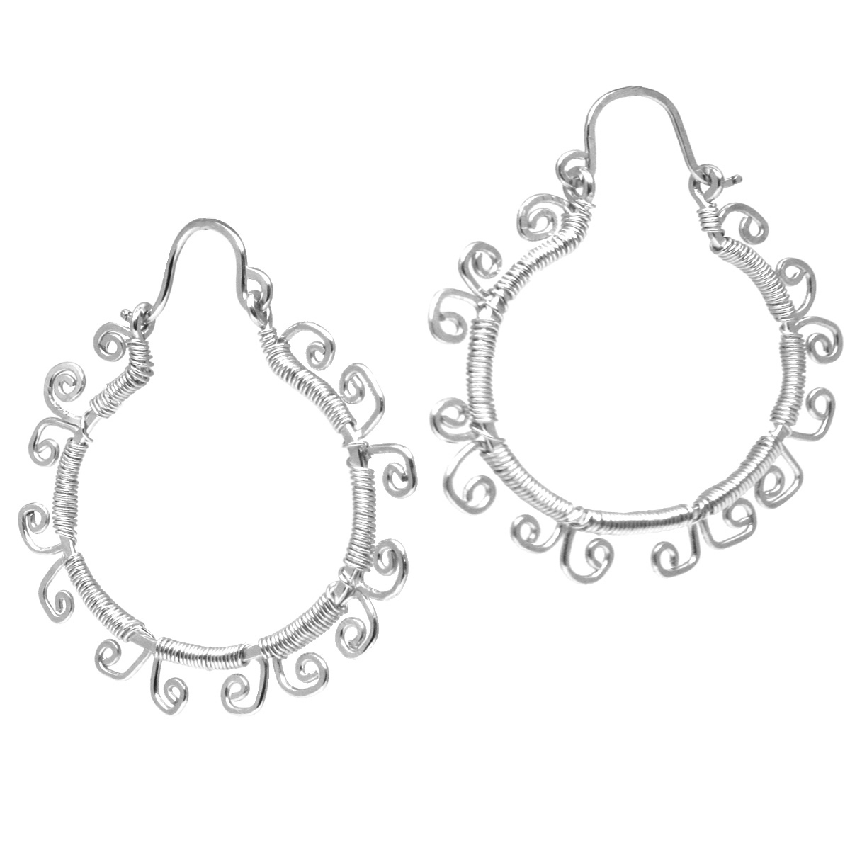 Hammered hoops with filagree wire, about 1-3/4".