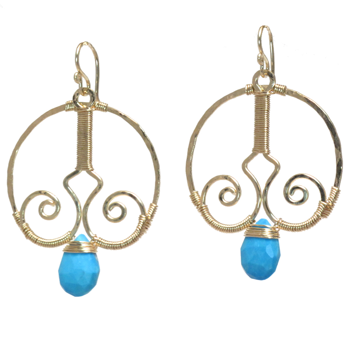 Hammered wired swirl drops with your choice of stone, about 2".