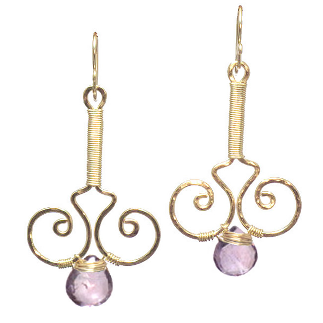 Hammered wired swirl drops with your choice of stone, about 2" long.