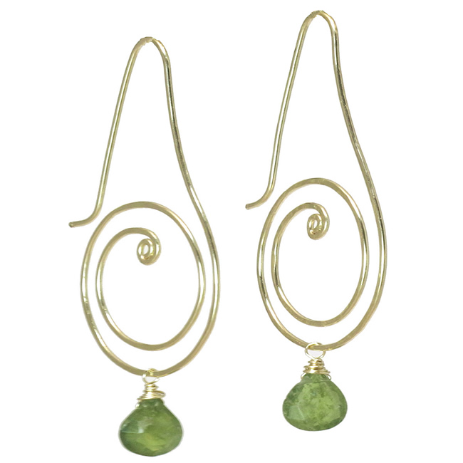 Hammered swirly drop-hoops with your choice of stone, about 2-1/2".
