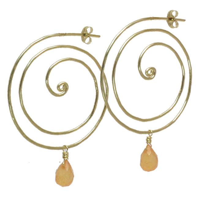 Hammered swirly hoops with your choice of removable stone, about 2".