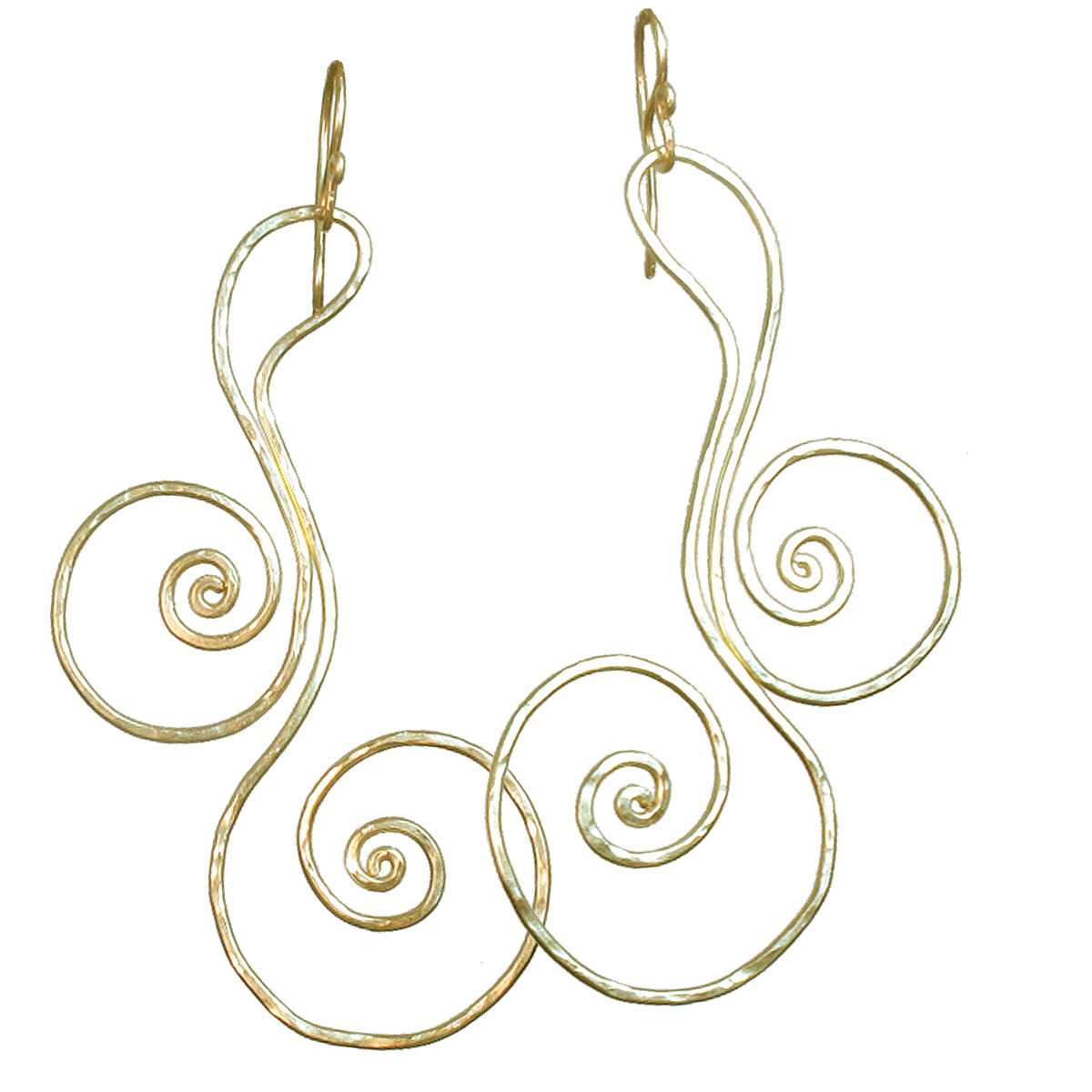 Hammered swirls, about 2" long.