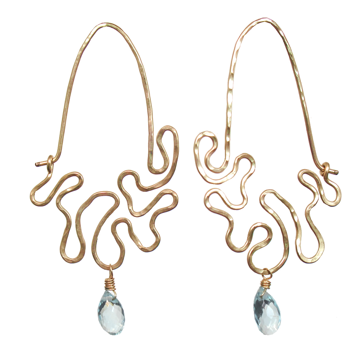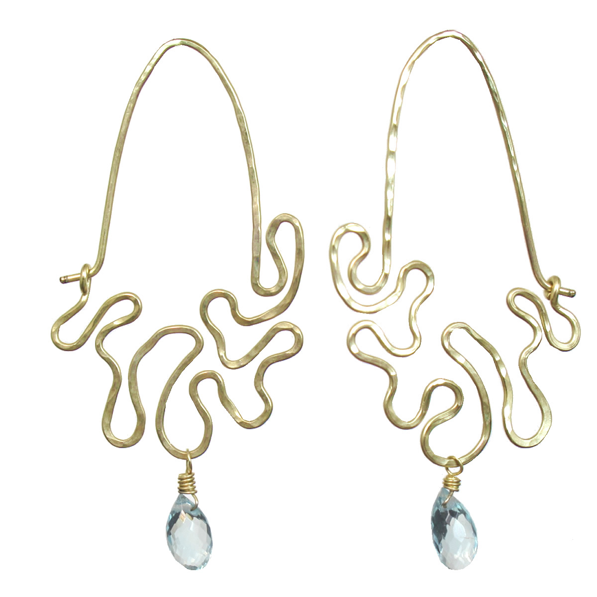Hammered squiggle hoops with your choice of stone, about 2-1/4" long.