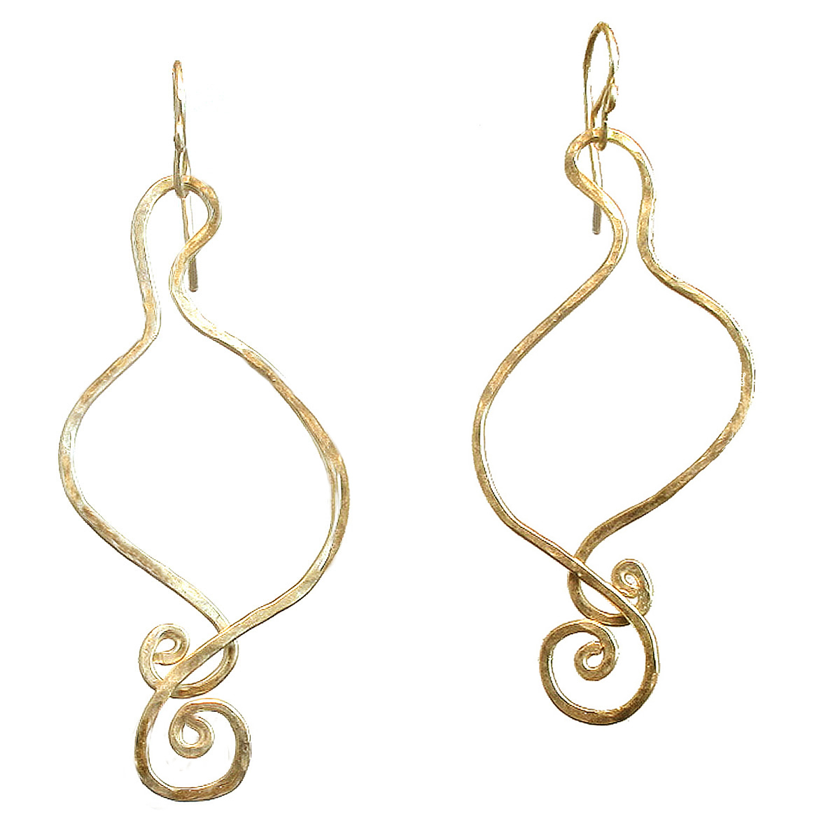 Hammered squiggle shapes, about 2" long.
